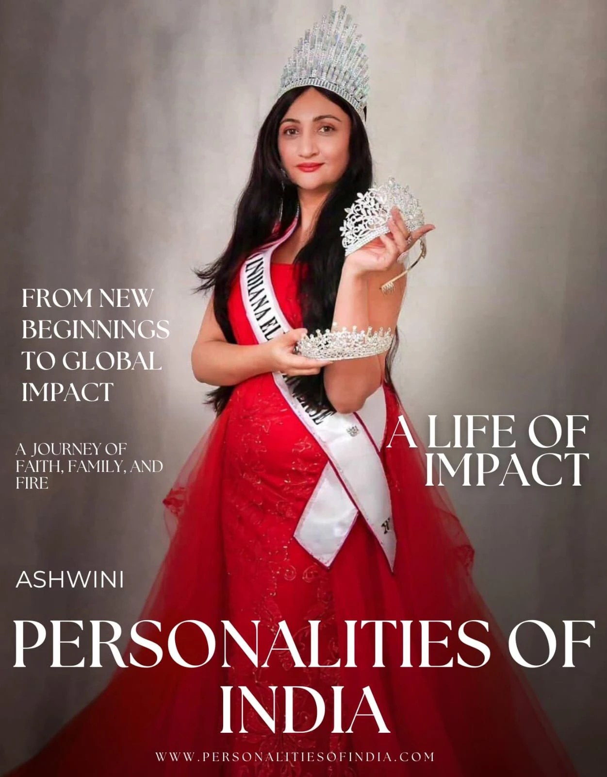 Alongside her advocacy work, Ashwini has made a remarkable mark in the world of pageantry and public speaking. She holds the prestigious titles of Mrs. Indiana Elite 2024 and Mrs. Indiana Universe Elite, adding to a long list of recognitions including Mrs. Indiana Worldwide Popular 2021. Her journey through pageantry has been about more than crowns—it has been about confidence, voice, and visibility for important causes.
