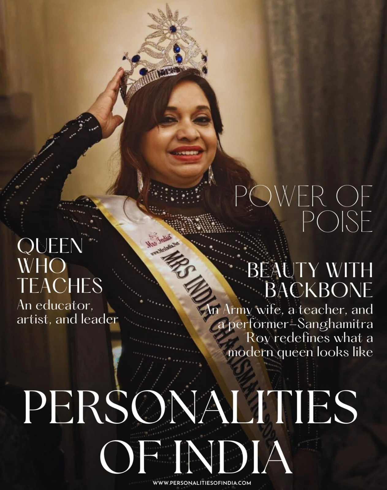 Even with a crown on her head, Sanghamitra’s dreams remain beautifully rooted in purpose. She wants to continue her journey as an English teacher, train soldiers’ wards in various ways, and keep touching lives through education. Alongside this, she hopes to begin dance workshops and classes, write more articles, spread more smiles, and continue being the Charismatic Queen—not just by title, but by spirit. Sanghamitra Roy’s story is not a fairytale; it is something far more inspiring—a real woman’s journey built through early responsibilities, constant change, quiet discipline, and unwavering work ethic. She is living proof that you can be many things at once: a mother, a teacher, an artist, a leader, a queen—and above all, a woman who never stopped moving forward.